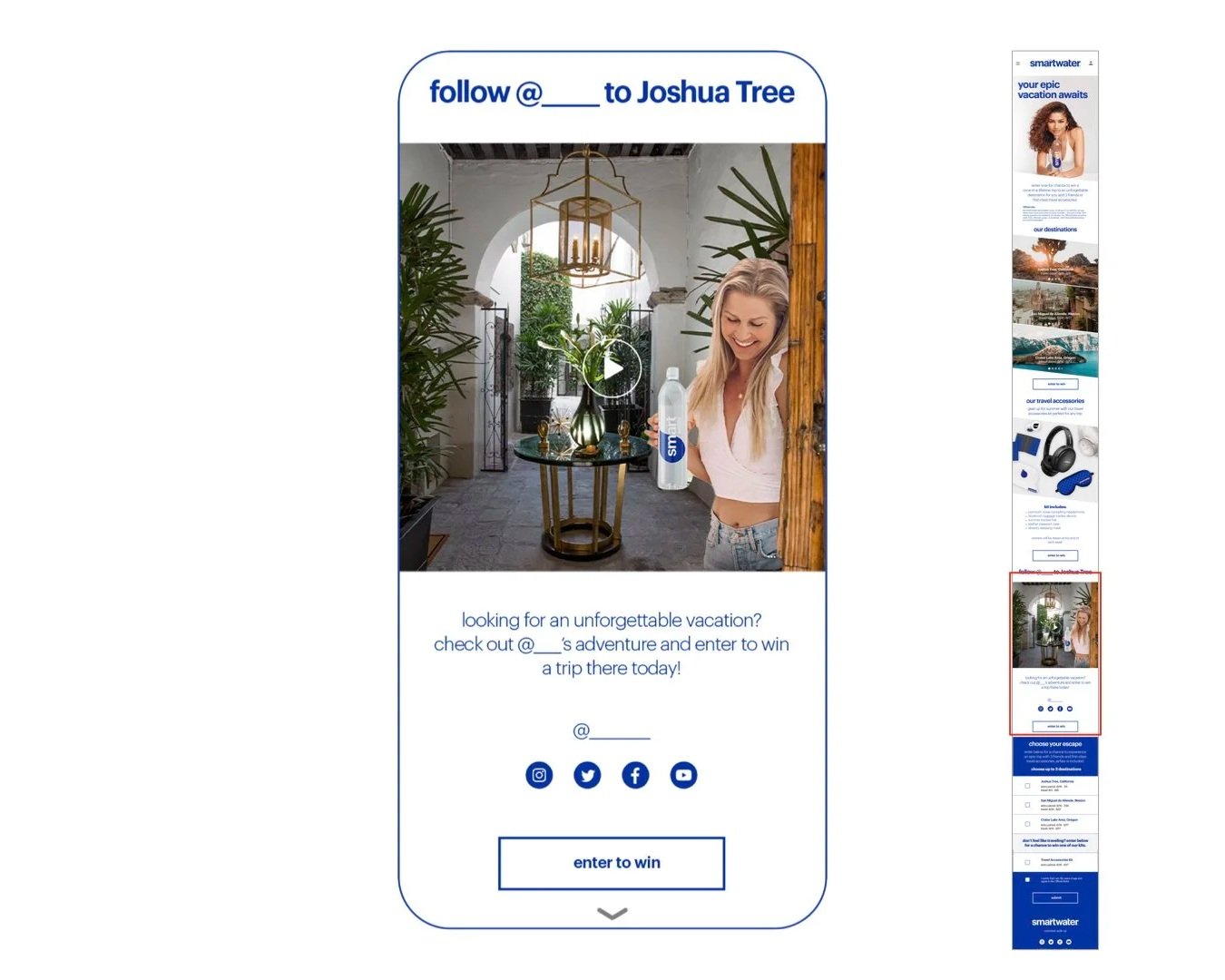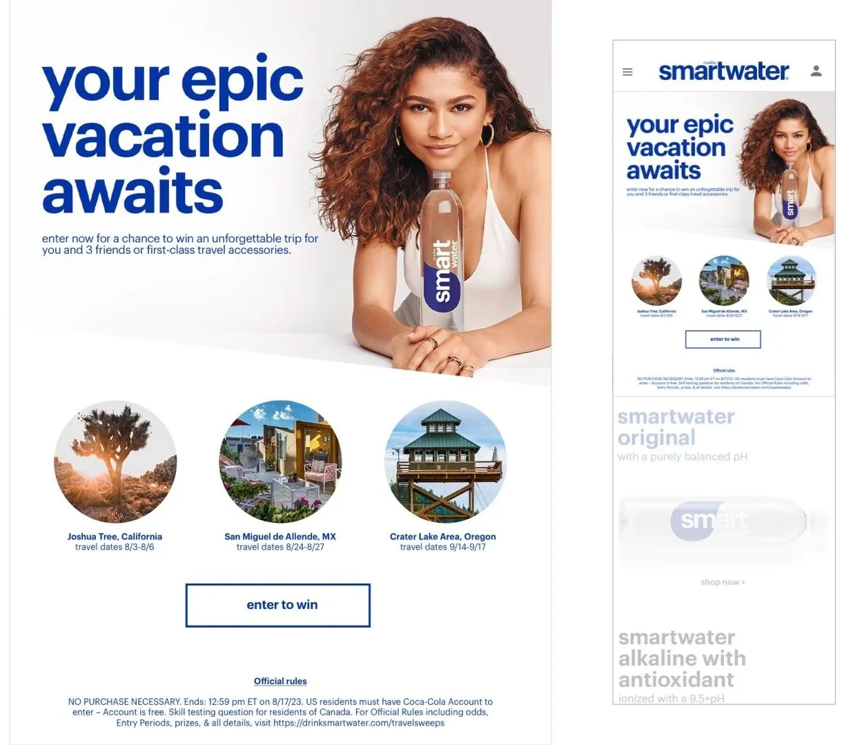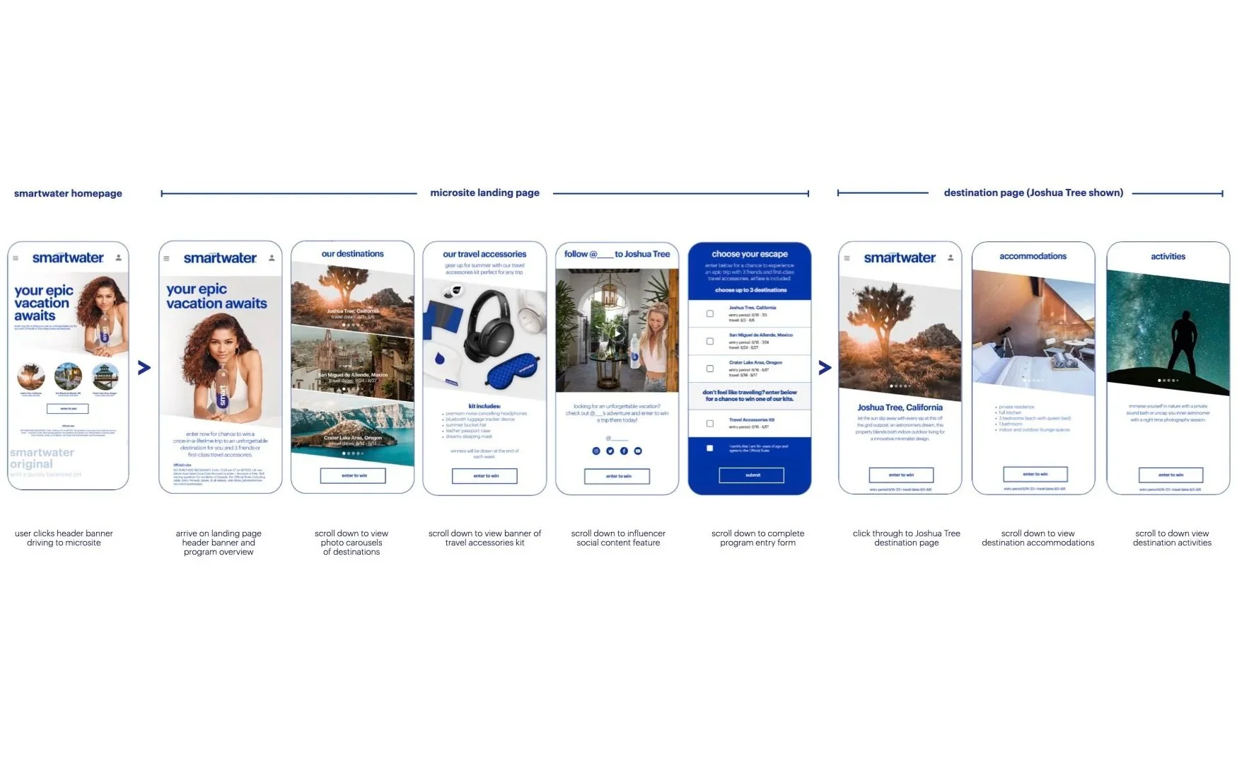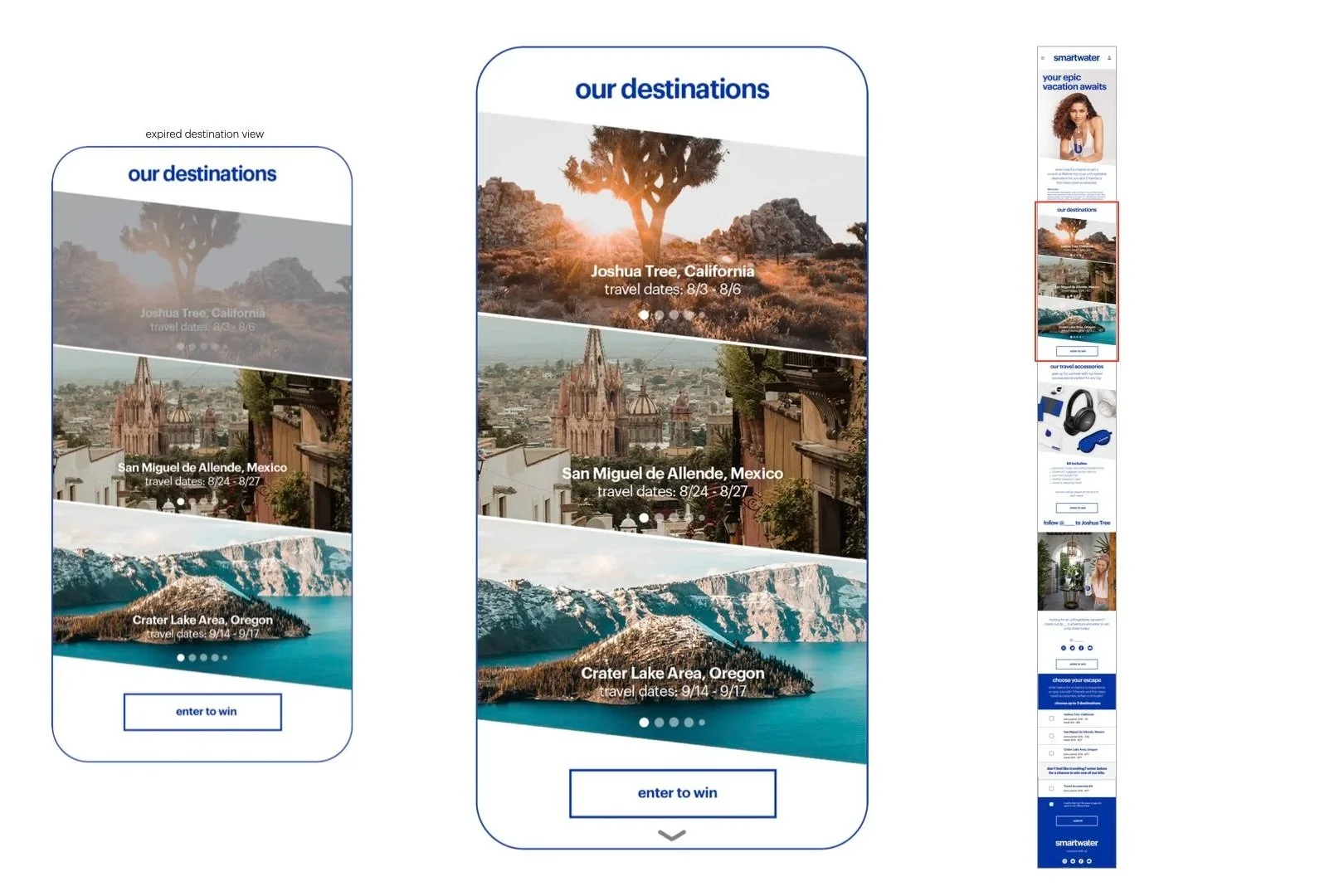 Smartwater is all about providing unconventionally smart hydration. So when they run a summer sweeps promotion, it has to be equally unconventional. To do that, we partnered with Modern Adventure to offer incredibly unique summer getaway experiences at a few truly unconventional destinations. To ground the campaign, we designed a sleek and modular microsite. The goal was to make it easy to navigate while remaining flexible for changing promotional content.
