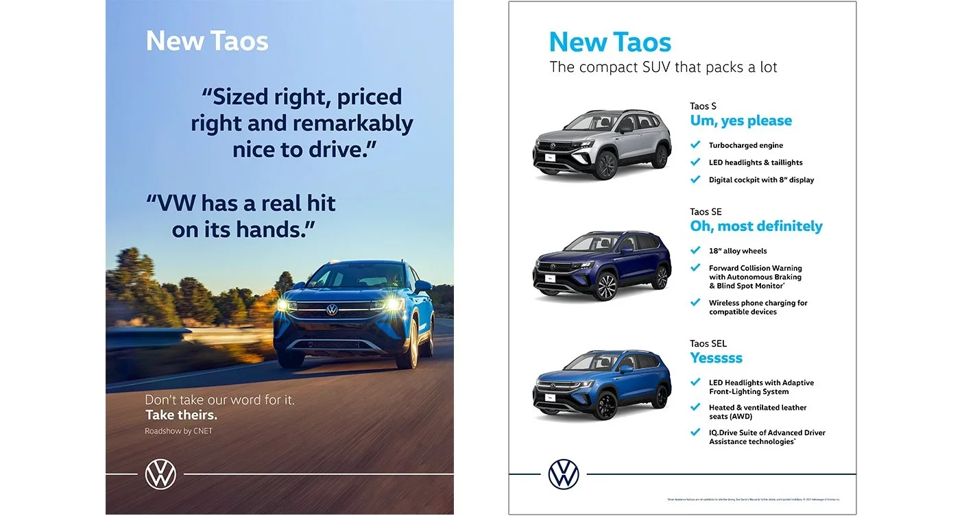 Volkswagen Taos LaunchLaunch of the new Volkswagen Taos, the most joy-full SUV, in dealerships nationwide.